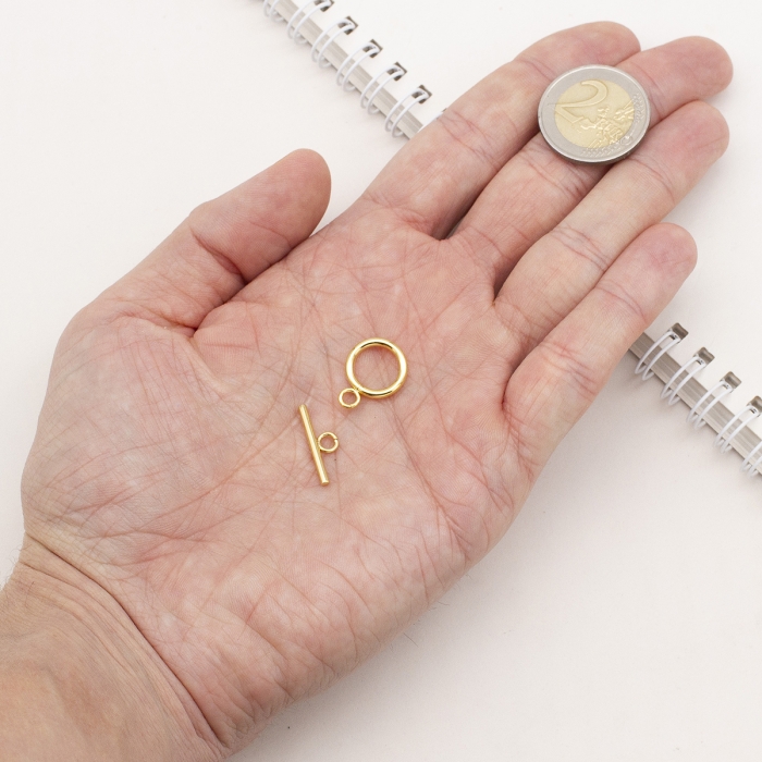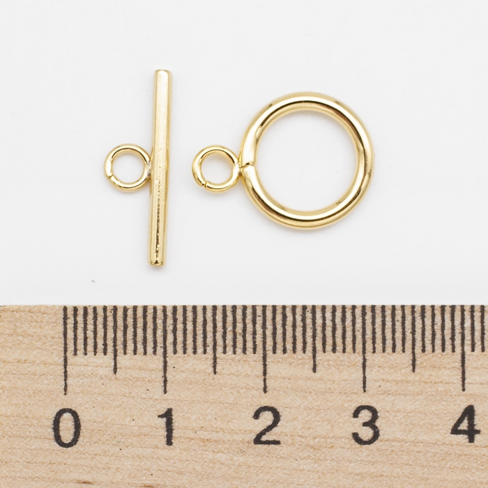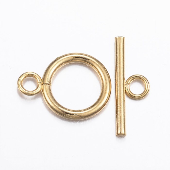 Застёжка тогл из нержавеющей стали с позолотой — это надёжный и декоративный элемент, идеально подходящий для создания стильных украшений. Конструкция состоит из двух частей: продолговатой перекладины (тогла) и кольца, в которое она вставляется для фиксации. Такой тип застёжки удобен в использовании и обеспечивает прочное соединение. Нержавеющая сталь обеспечивает долговечность и устойчивость к коррозии, а позолота придаёт изделию благородный вид и защищает от износа. Эта застёжка станет не только функциональной частью браслета или колье, но и стильным акцентом, подчёркивающим изящество готового украшения.