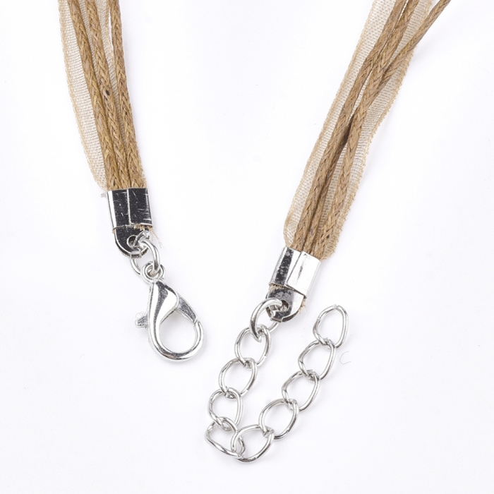 Основа для Ожерелья из 2 Хлопковых Шнуров и Ленты Органзы с Застежкой Карабин-лобстер и цепочкой. Цвет: Перу.
