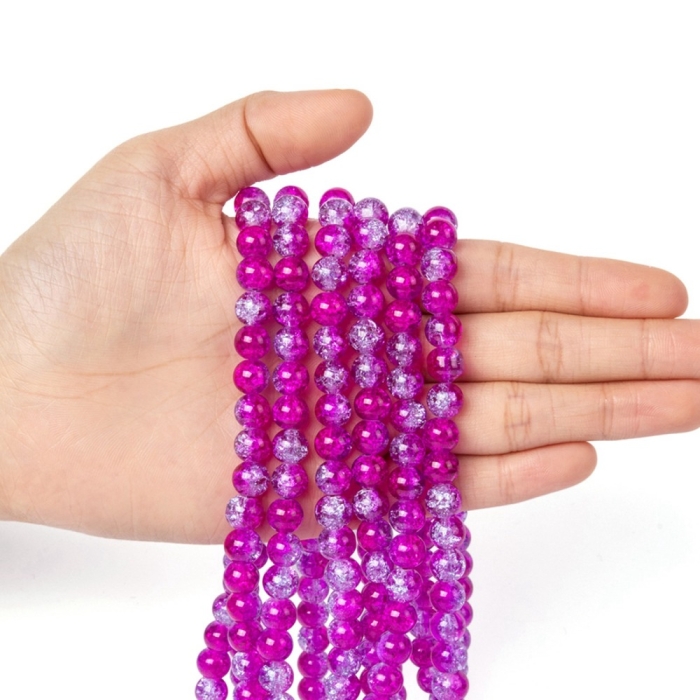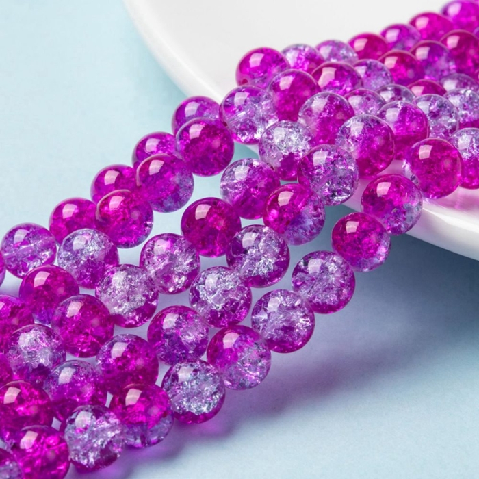 Бусины Кракле "Битое Стекло" Круглые, Окрашенные, Двухцветные, Темно-розоый, 8мм, Отв. 1.3-1.6мм, около 95шт/76см/нить (УТ100028721) - ᐈ заказывайте в Москве оптом и в розницу ✅Скидки ✅Акции ✅Распродажи ᐈ доставка по всей России ᐈ Интернет-магазин Мир Бусин