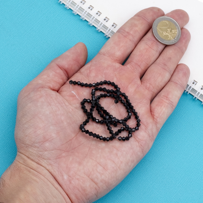 Бусины Стеклянные, Имитация Австрийского Хрусталя Биконус Класс АА, Черные, 3х3мм, Отверстие 0.8мм, около 110шт/36см/нить, (УТ100028737) - ᐈ заказывайте в Москве оптом и в розницу ✅Скидки ✅Акции ✅Распродажи ᐈ доставка по всей России ᐈ Интернет-магазин Мир Бусин