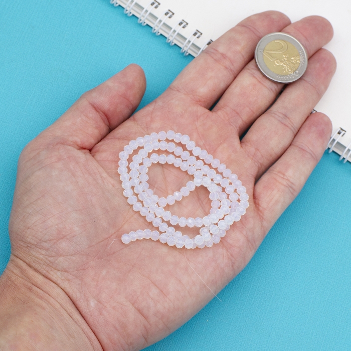 Бусины Стеклянные Имитация Нефрита, Граненые, Прозрачные, Рондель, Белый, 4х3мм, Отв-тие: 0.4мм, около 110шт/39см/нить, (УТ100028770) - ᐈ заказывайте в Москве оптом и в розницу ✅Скидки ✅Акции ✅Распродажи ᐈ доставка по всей России ᐈ Интернет-магазин Мир Бусин
