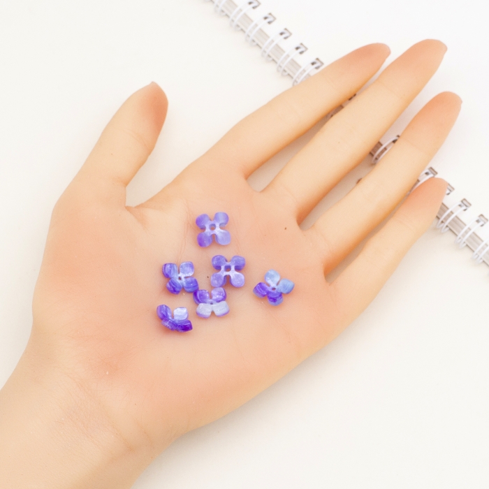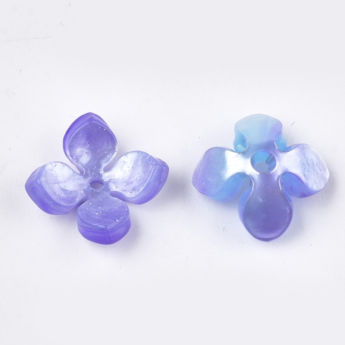 Шапочки для бусин из эпоксидной смолы в форме цветка с четырьмя лепестками в сине-сером цвете — это утонченный декоративный элемент для создания уникальных украшений. Размеры: длина 14 мм, ширина 14 мм, толщина 6 мм, с отверстием 1,2 мм. Эти шапочки добавляют легкость и элегантность вашим изделиям, придавая бусинам завершенный вид и подчеркивая их дизайн.