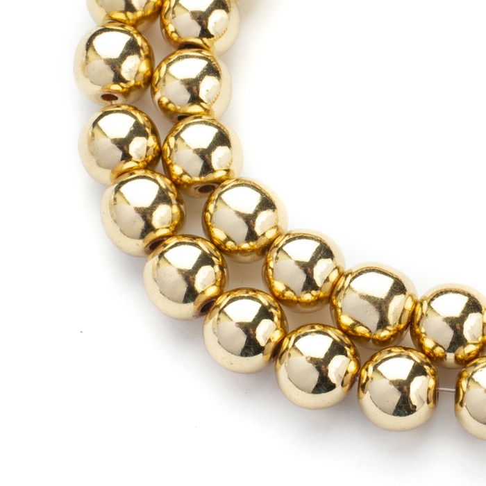 Бусины Синтетический Гематит, Немагнитный, Круглые, Гальваника, Покрытие Светлое Золото, 10х9мм, Отв. 1-1.5мм, ок. 42шт/38см/нить (УТ100029094) - ᐈ заказывайте в Москве оптом и в розницу ✅Скидки ✅Акции ✅Распродажи ᐈ доставка по всей России ᐈ Интернет-магазин Мир Бусин
