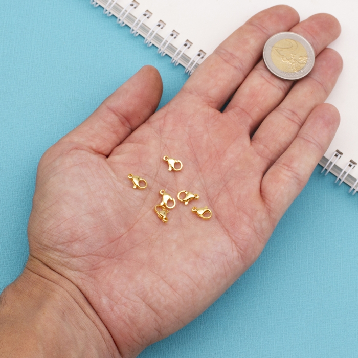 Данная застежка прекрасно подходит для создания и ремонта браслетов, цепочек, колье и других украшений. Карабин-лобстер обеспечивает надежное и удобное соединение, сохраняя изделие целостным и долговечным. Позолота не только придаёт застежке элегантность, но и служит дополнительной защитой от коррозии, потускнения и механических повреждений. Застежка также отлично комбинируется с подвесками, декоративными элементами и фурнитурой, позволяя создавать уникальные дизайнерские украшения.