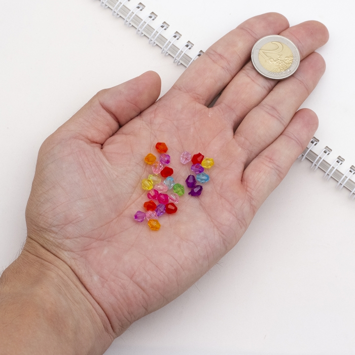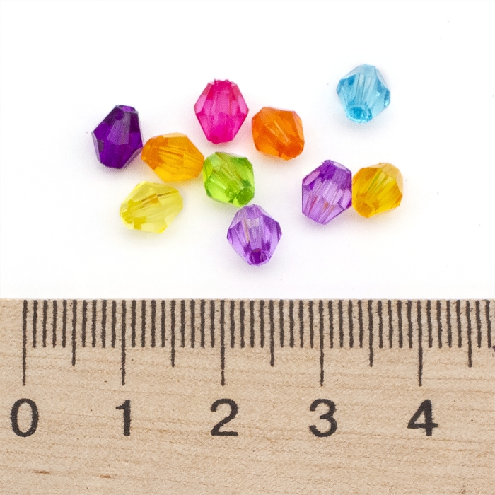 Бусины Акрил Биконус, Прозрачные Граненые, Цвет: Микс, Размер: 6х5.5мм, Отверстие 2мм, около 300шт/25г, (УТ100029537) - ᐈ заказывайте в Москве оптом и в розницу ✅Скидки ✅Акции ✅Распродажи ᐈ доставка по всей России ᐈ Интернет-магазин Мир Бусин