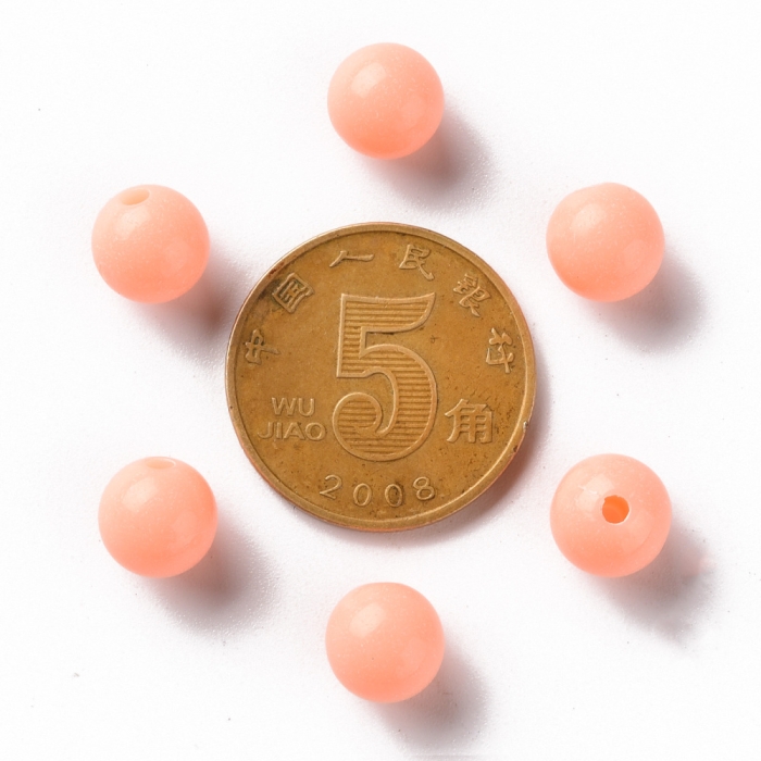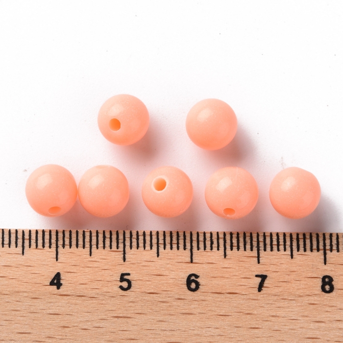 Бусины Акриловые Круглые, Цвет: Светло-лососевый, Размер: 8х7мм, Отверстие: 2мм, около 160шт/50г, (УТ100029572)