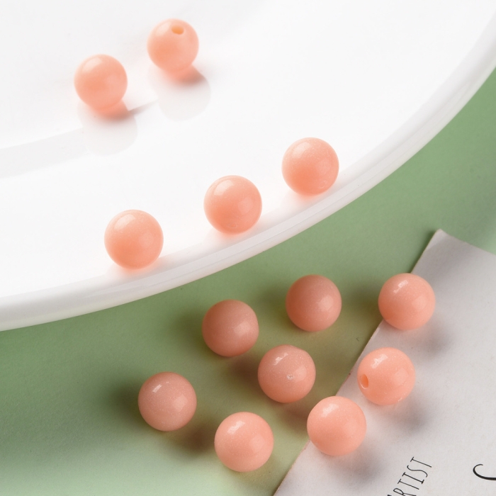 Бусины Акриловые, Непрозрачные, Круглые, Цвет: Светло-лососевый.