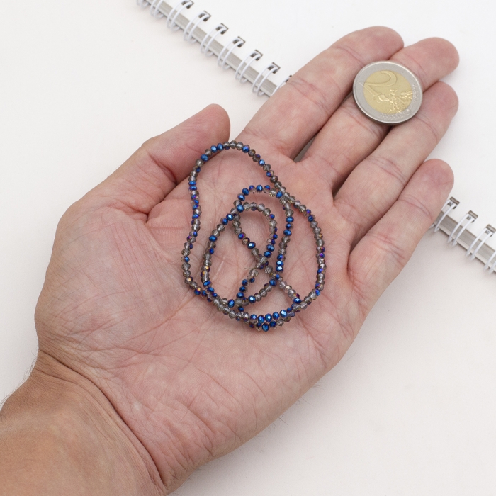 Бусины Гальваническое Стекло, Граненые, Полупокрытие, Рондель, Цвет: Синий, Размер: 3х2мм, Отв-тие: 0.8мм, ок. 165шт/38см/нить (УТ100029652) - ᐈ заказывайте в Москве оптом и в розницу ✅Скидки ✅Акции ✅Распродажи ᐈ доставка по всей России ᐈ Интернет-магазин Мир Бусин