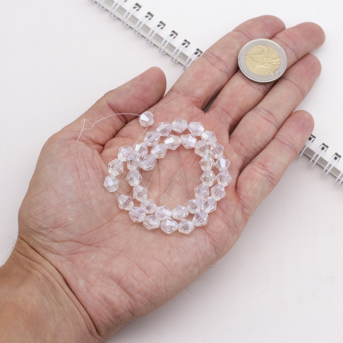 Бусины Гальваника Стекло АВ-Цвет, Граненые, Биконус, Цвет: Бесцветный, Размер: 7.5-8х7.5-8мм, Отв-тие: 1.5мм, около 35шт/28.5см/нить, (УТ100029689) - ᐈ заказывайте в Москве оптом и в розницу ✅Скидки ✅Акции ✅Распродажи ᐈ доставка по всей России ᐈ Интернет-магазин Мир Бусин
