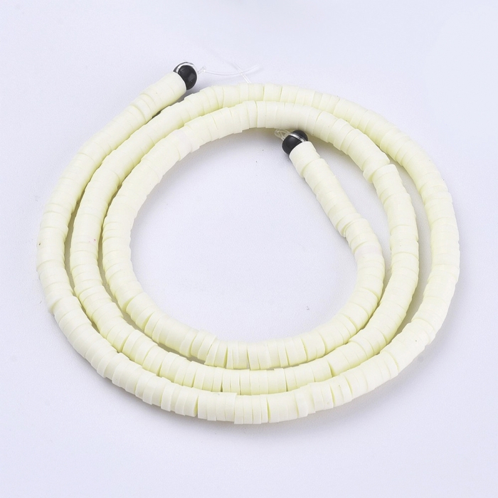 Бусины Экологичные из Полимерной Глины, Ручная Работа, Бусины Heishi, Круглые Плоские, Цвет: Светло-желтый.
