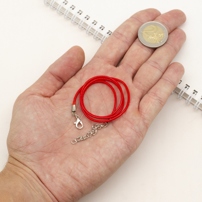 Основа для Ожерелья, Шнур Вощеный Хлопковый, Застежка Карабин и Цепь, Красный, 43.5смх1.5мм, Застежка 12х7х2.5мм, Удлинитель: 4-4.5см (УТ100030051)