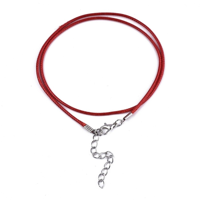 Основа для Ожерелий, Вощеный Хлопковый Шнур с Застежками карабин Лобстер и Удлинительной цепочкой из Железа, Цвет: Красный и Платина.