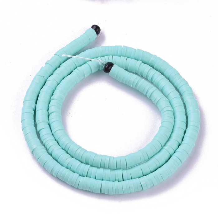 Бусины Экологичные из Полимерной Глины, Ручная Работа, Бусины Heishi, Круглые Плоские, Цвет: Аквамарин.