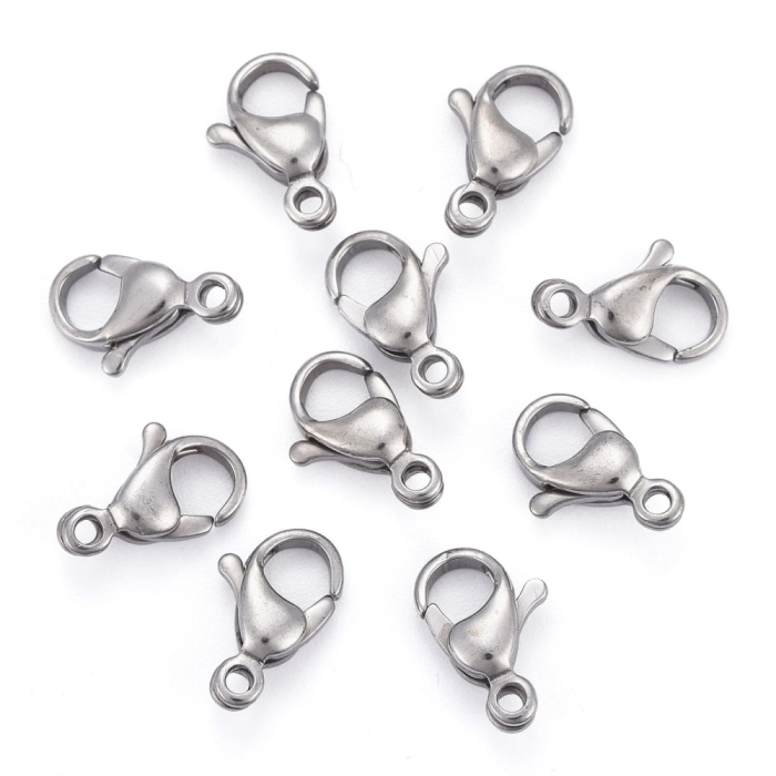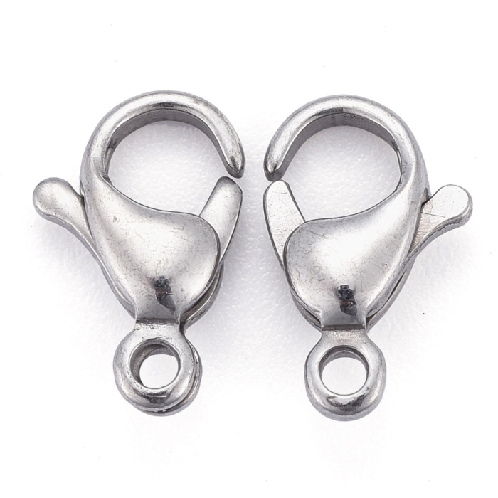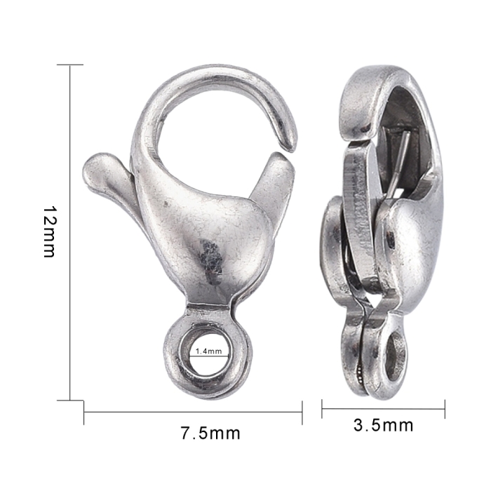 Застежка Карабин-Лобстер, Полированная Нержавеющая Сталь, Класс А, Размер: 12х7.5х3.5мм, Отверстие 1.4мм, (УТ100030782)