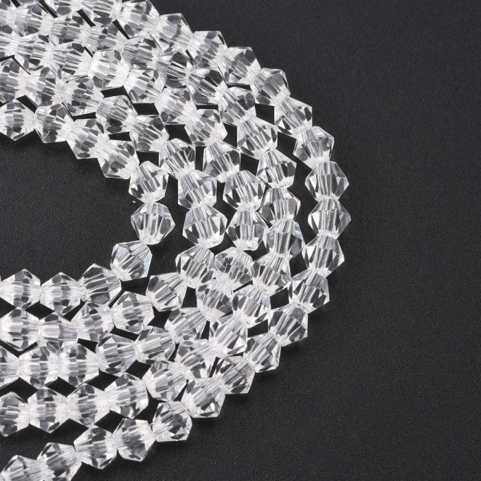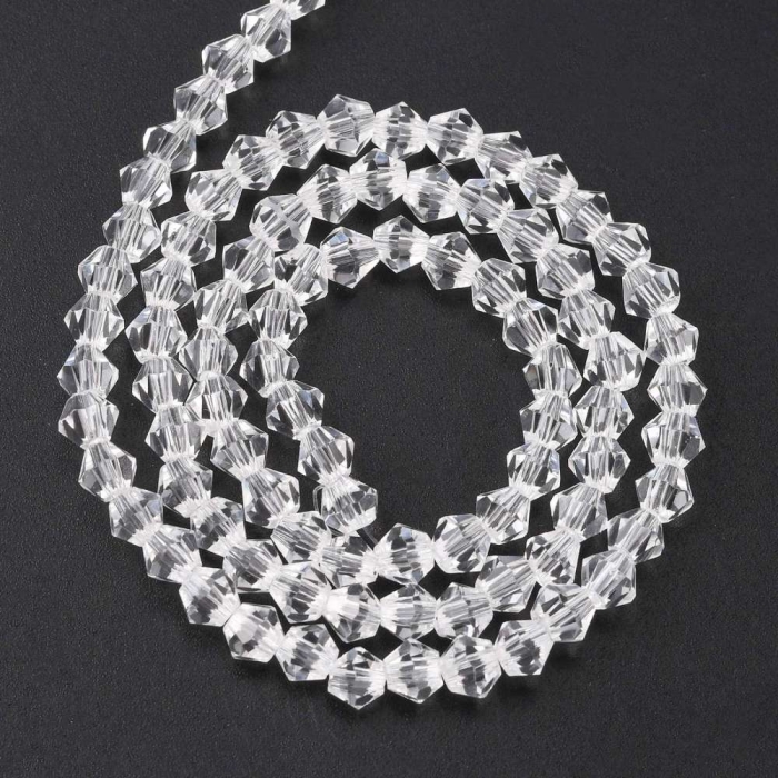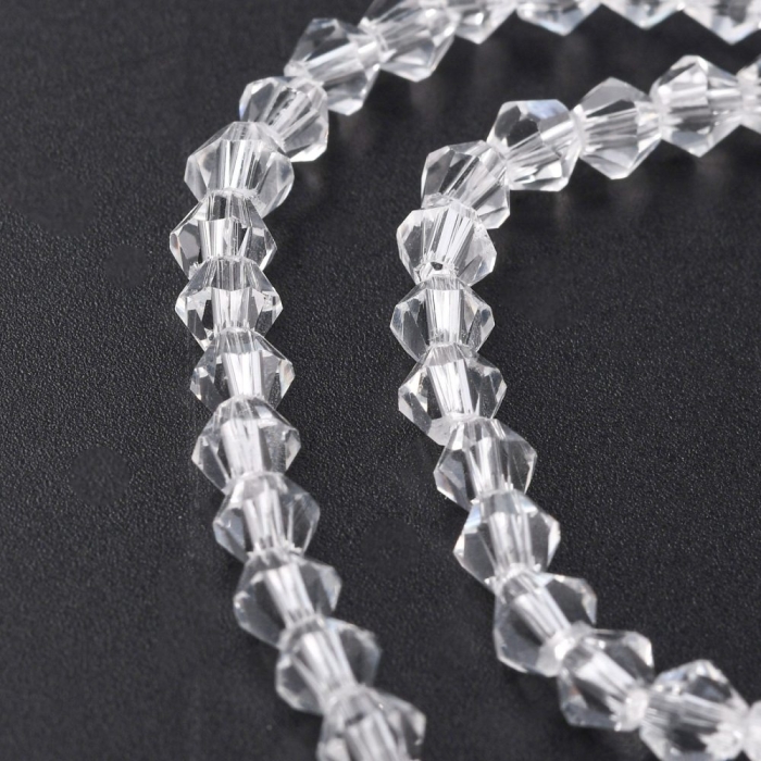 Бусины Австрийский Хрусталь Класс АА, Имитация, Биконус, Бесцветный, 4х4мм, Отв-тие: 1мм, около 80шт/29см/нить, 10 нитей, (УТ100031862)