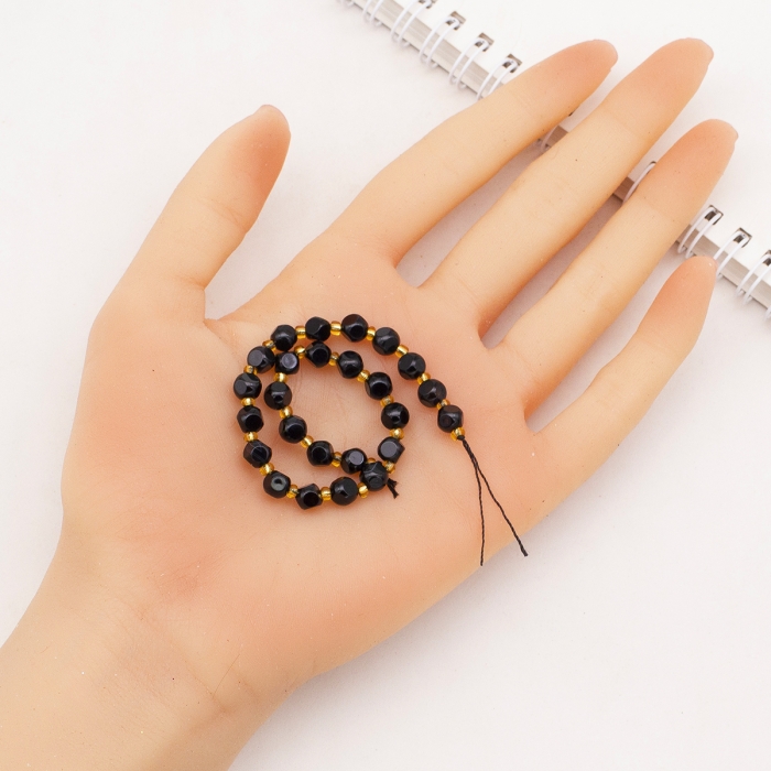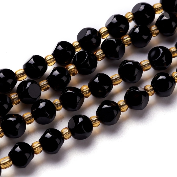 Бусины Натуральный Черный Оникс с Бисером Шестигранные, 6-6.5х6-6.5х6-6.5мм, Отверстие 0.5мм, около 22шт/19см/нить, (УТ100032100) - ᐈ заказывайте в Москве оптом и в розницу ✅Скидки ✅Акции ✅Распродажи ᐈ доставка по всей России ᐈ Интернет-магазин Мир Бусин