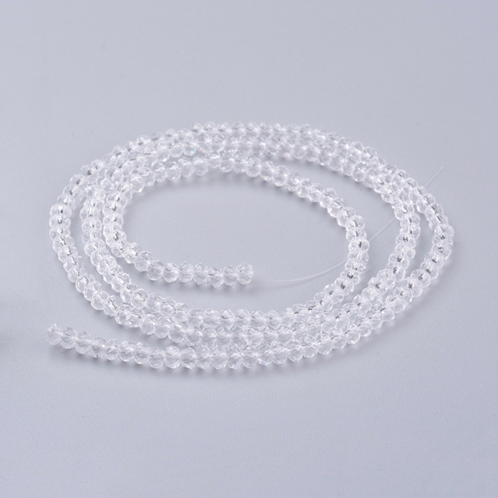 Бусины Стеклянные Рондель Прозрачные, Бесцветный, 3х2мм, Отверстие 0.5мм, 137шт/32см/нить, 10 нитей, (УТ100032124)