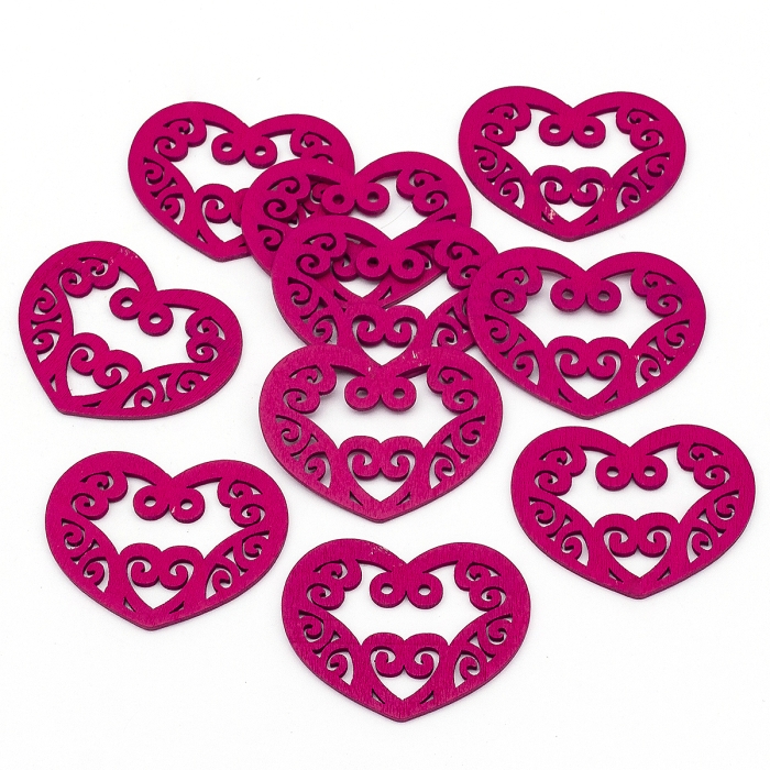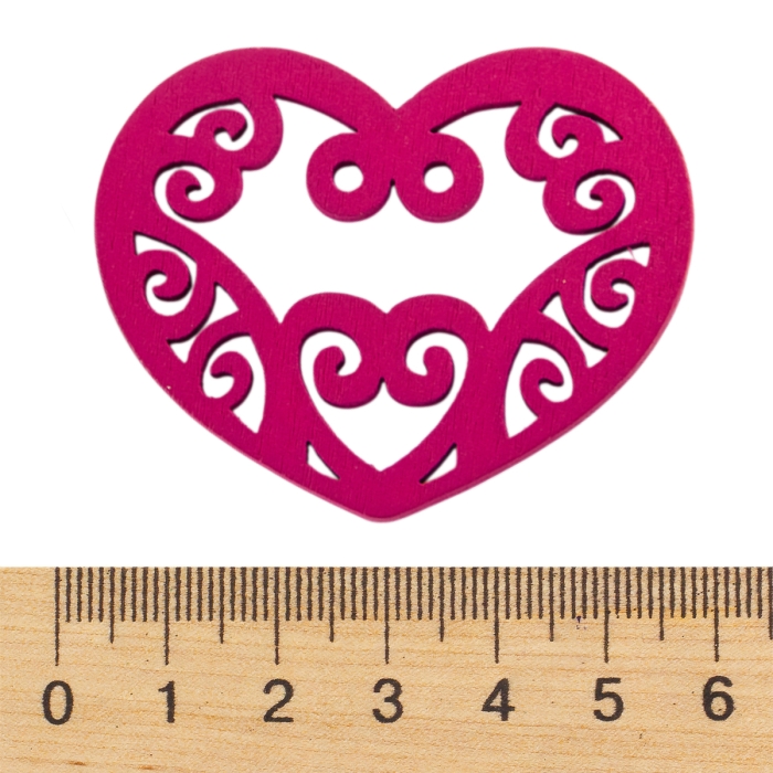 Подвески Деревянные Окрашенные, Сердце, Цвет: Красный, Размер: 52х42х2мм, Отв-тие 2мм, (УТ000003772)