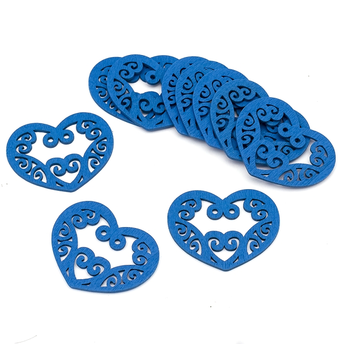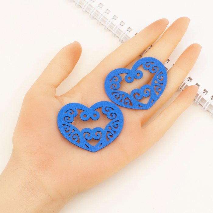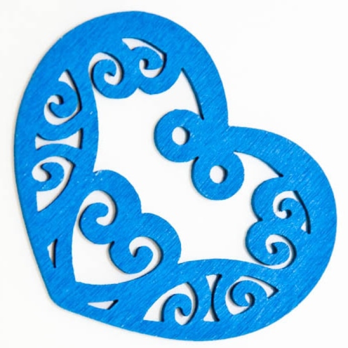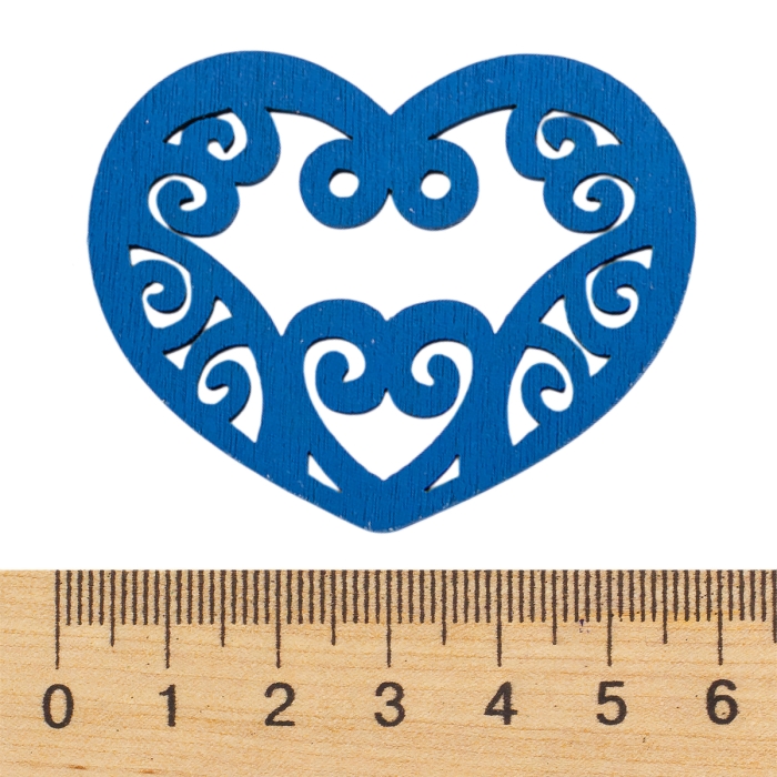 Подвески Деревянные Окрашенные, Сердце, Цвет: Синий, Размер: 52х42х2мм, Отв-тие 2мм, (УТ000003784)