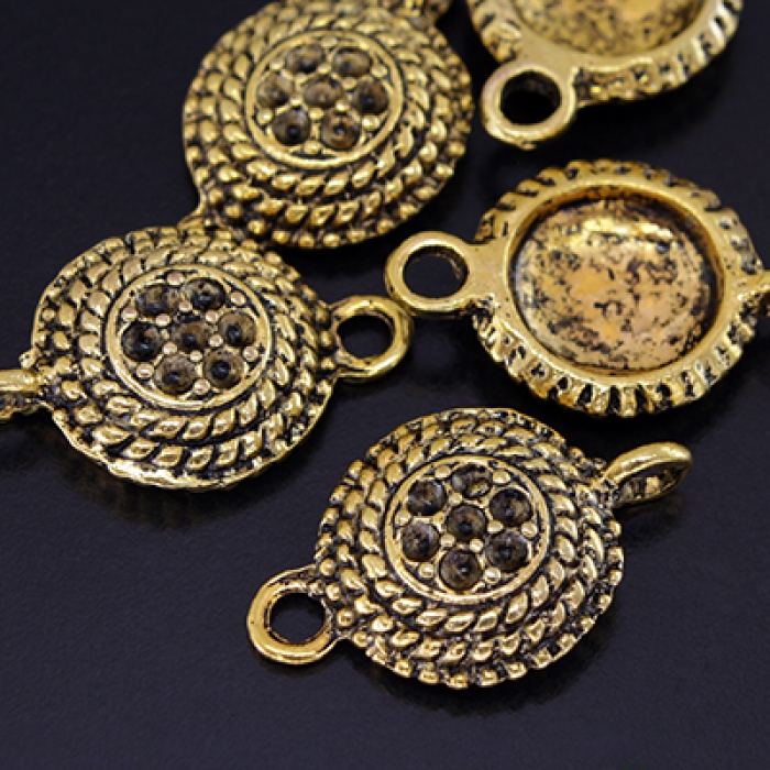 Коннектор-Сеттинг Круглый, под Стразы, 2 отверстия, Бижутерный сплав, Античное Золото, 22х13х5мм, Отв-тие:2мм, Под Стразы 1~2мм. (УТ000005556) - ᐈ заказывайте в Москве оптом и в розницу ✅Скидки ✅Акции ✅Распродажи ᐈ доставка по всей России ᐈ Интернет-магазин Мир Бусин