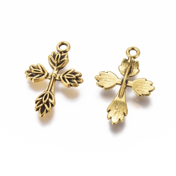 Кулон Крест, Металл, Цвет: Античное Золото, Размер: 26х16х2мм, Отверстие 3мм, (УТ000006733) - ᐈ заказывайте в Москве оптом и в розницу ✅Скидки ✅Акции ✅Распродажи ᐈ доставка по всей России ᐈ Интернет-магазин Мир Бусин