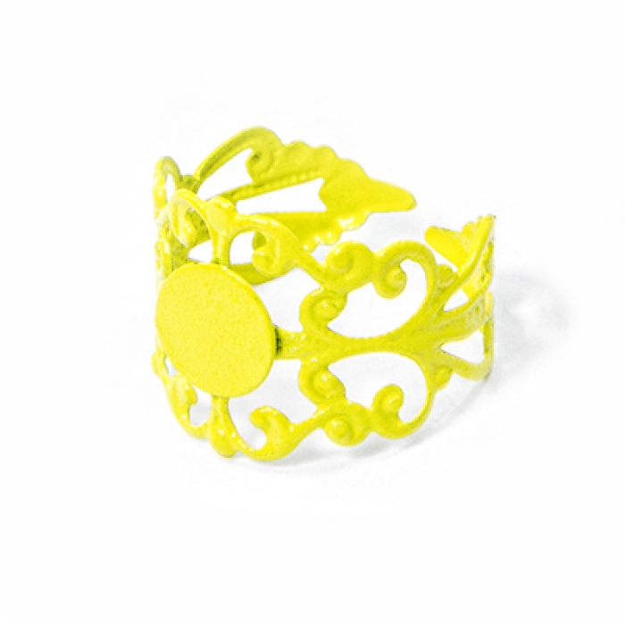 Основа для кольца, Латунь, Филигранная, Цвет: Желтый, Размер: Диаметр 18мм, Длина 16мм, Толщина 0.7мм, Размер Основы 8мм, (УТ100006092)