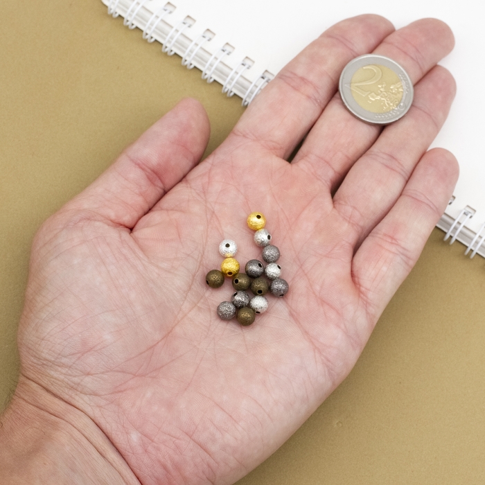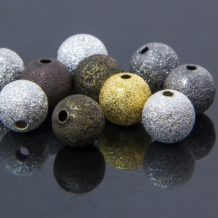 Бусины из латуни «Звездная Пыль», круглые, — это декоративные элементы с мелким текстурированным покрытием, придающим им эффект нежного мерцания, напоминающего звездную пыль. Они отлично подходят для создания бижутерии, добавляя украшениям изысканный блеск и текстуру.