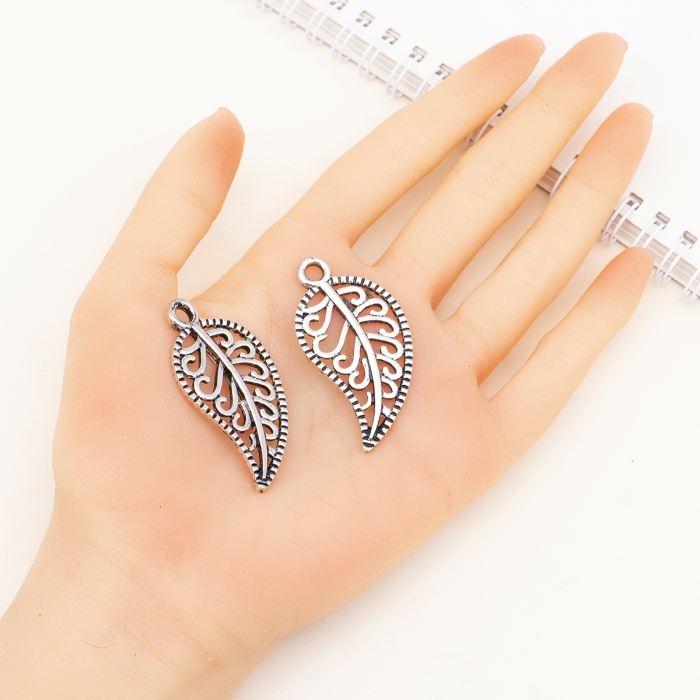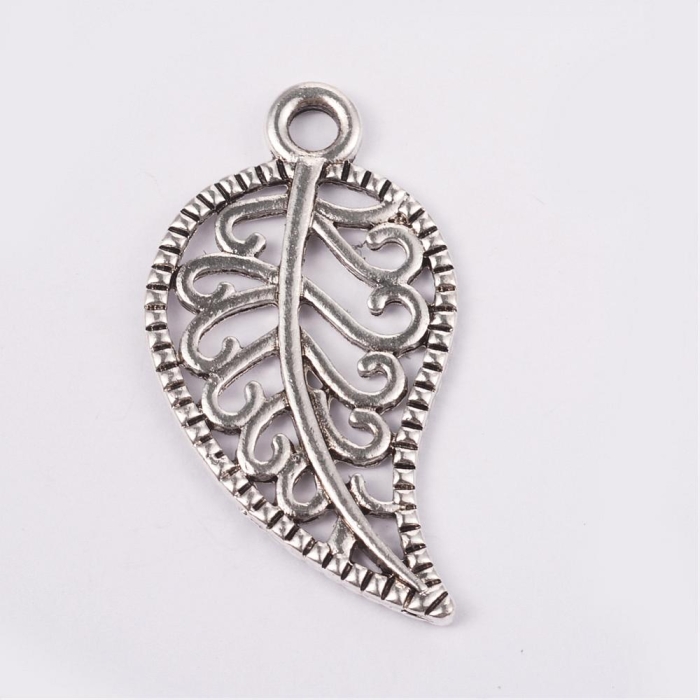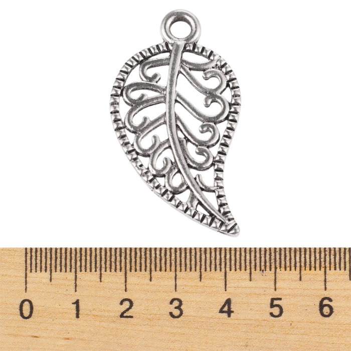 Кулон Лист, Железные, Цвет: Серебро, Размер: 23.5х14х0.5мм, Отверстие 1мм, (УТ000005668)