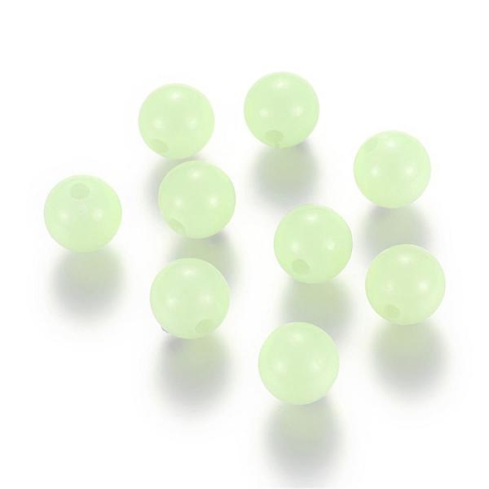 Бусины Акрил Флуоресцентные, Светящиеся в темноте, Круглые, Светло-зеленый, 8мм, Отверстие 2мм, около 85шт/25г, (УТ100014159)