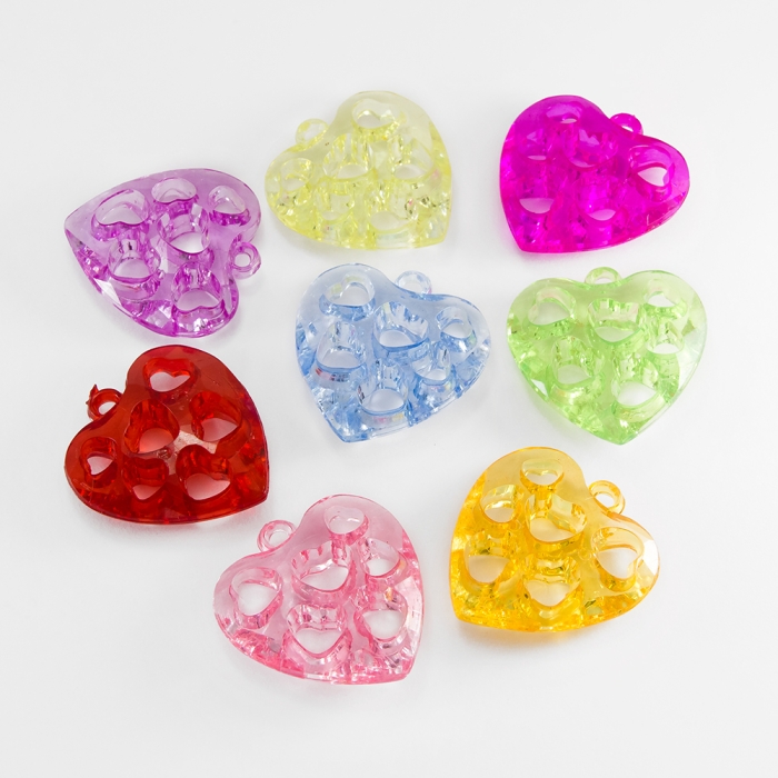 Кулоны Акрил Сердце, Прозрачные, Цвет: Микс, Размер: 38х36х11мм, Отверстие 3мм, (УТ100013460)