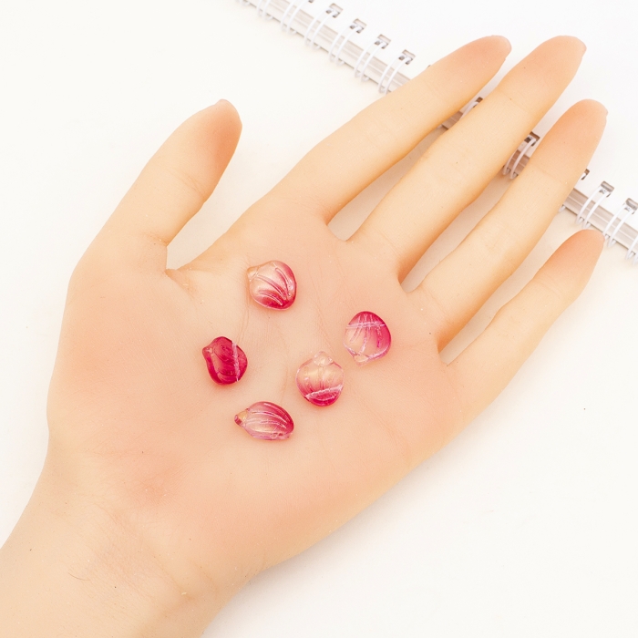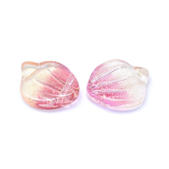 Кулон Стеклянный, Лепесток, Цвет: Фламинго, Размер: 15х12х4мм Отверстие 1мм, (УТ100017487)