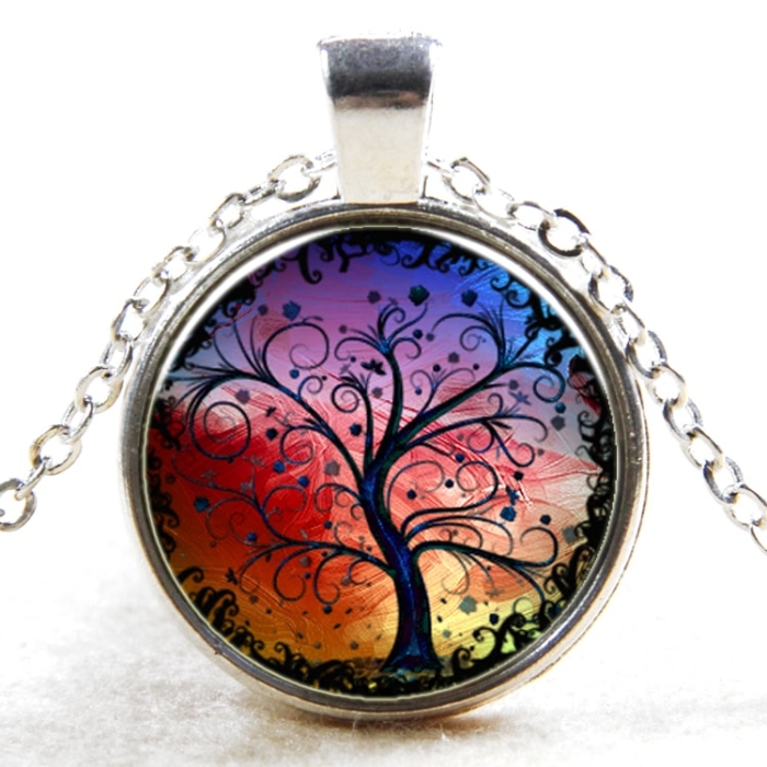 Кулон Дерево Круглый на Цепочке, Металл и Стекло, Цвет: Серебро, Цепочки: 45-50см, Кулон: 27мм, (УТ100009363) - ᐈ заказывайте в Москве оптом и в розницу ✅Скидки ✅Акции ✅Распродажи ᐈ доставка по всей России ᐈ Интернет-магазин Мир Бусин