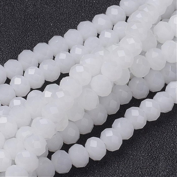 Бусины Стеклянные Имитация Нефрита, Граненые, Рондель, Цвет: Белый, Размер: 10х7мм, Отв-тие: 1мм, около 72шт/50см/нить, (УТ100019326) - ᐈ заказывайте в Москве оптом и в розницу ✅Скидки ✅Акции ✅Распродажи ᐈ доставка по всей России ᐈ Интернет-магазин Мир Бусин