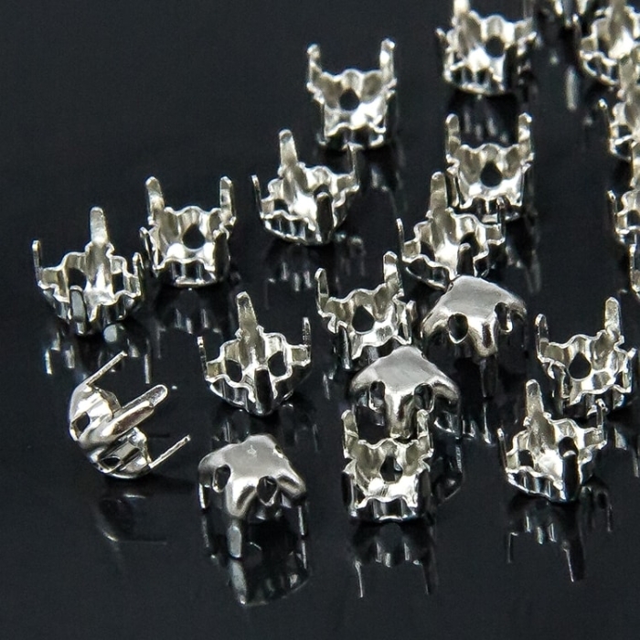 Цапы для Риволи, Сеттинг под Стразы, Латунь, Квадратный, Цвет: Платина, Размер: 4x4x0.23мм, Под Стразы 4х4мм, (УТ100019996) - ᐈ заказывайте в Москве оптом и в розницу ✅Скидки ✅Акции ✅Распродажи ᐈ доставка по всей России ᐈ Интернет-магазин Мир Бусин