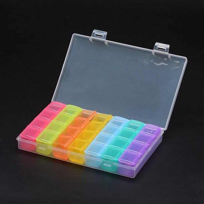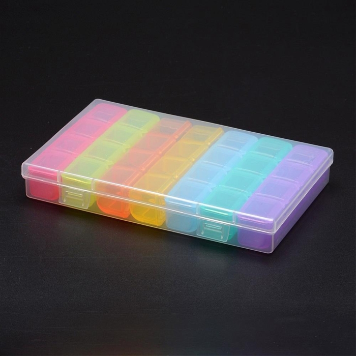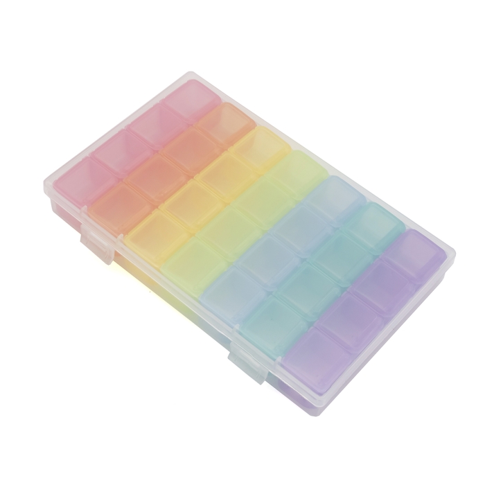 Контейнер для Бисера и Бусин, Пластик, Разноцветный, Прямоугольный, на 28 отсеков, Размер: 175x108x26мм, (УТ100020710)
