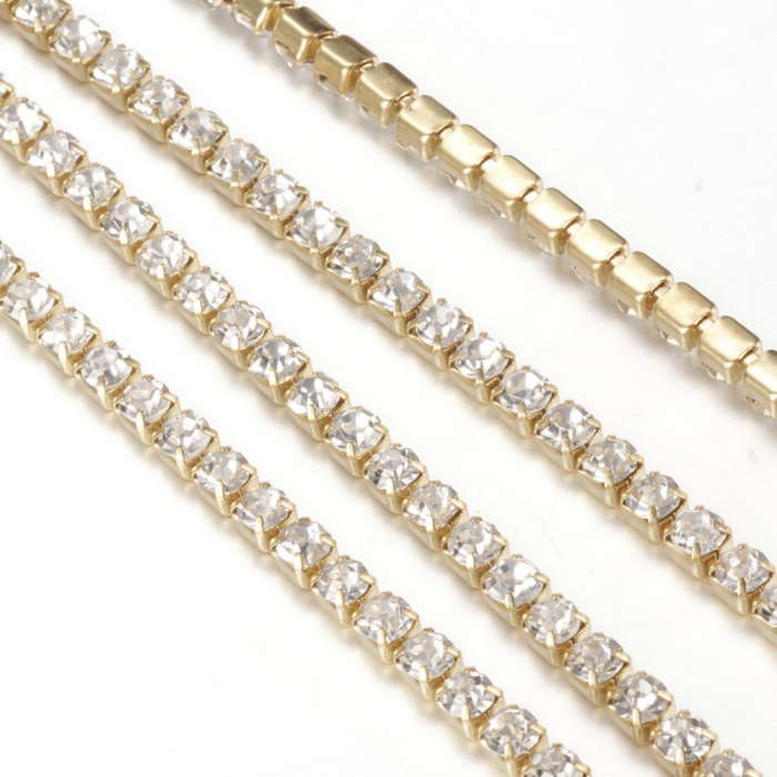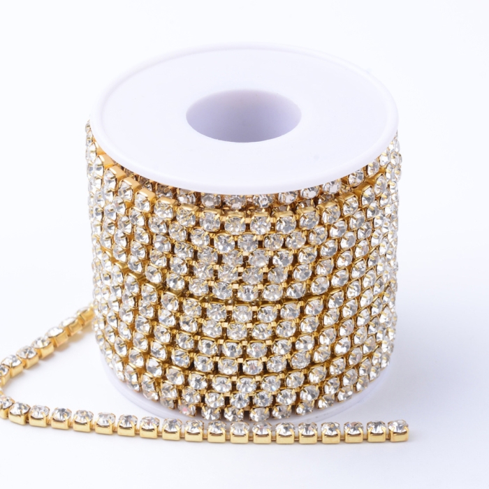 Цепь со Стразами Латунь, в Катушках по 9м, Без Покрытия, Цвет Страз: Кристалл, Ширина 2.8мм, (УТ100020950) - ᐈ заказывайте в Москве оптом и в розницу ✅Скидки ✅Акции ✅Распродажи ᐈ доставка по всей России ᐈ Интернет-магазин Мир Бусин
