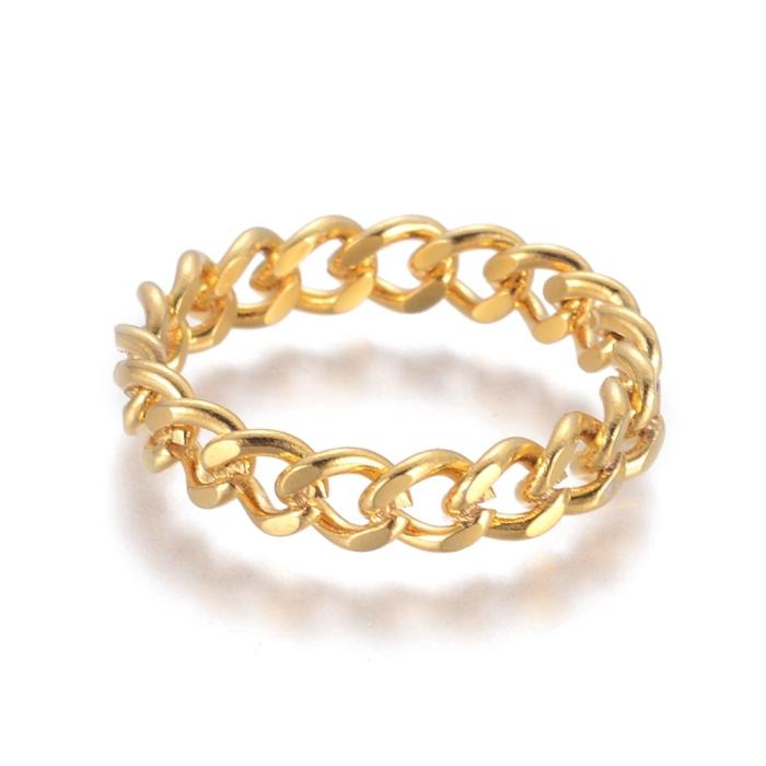 Кольцо Цепь, Нержавеющая Сталь, Цвет: Золото, Размер 17.0, Звенья: 5.5x4.5x1мм, (УТ100021246)