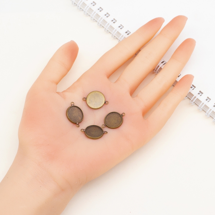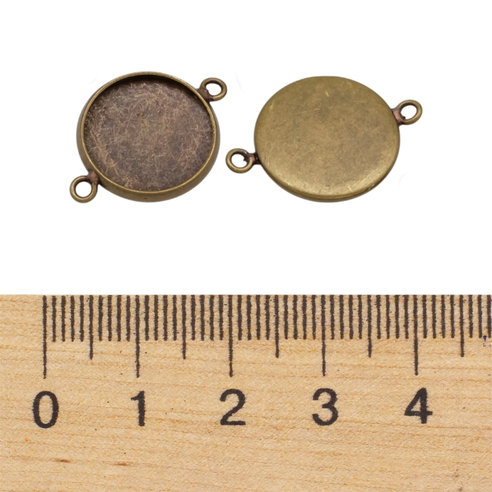 Коннектор-Сеттинг Круглый под Кабошон, Латунь, Цвет: Бронза, Размер: 21.5x16x2.5мм, Внутренний Размер 14х1.5мм, Отверстие 1.5мм, (УТ100021615) - ᐈ заказывайте в Москве оптом и в розницу ✅Скидки ✅Акции ✅Распродажи ᐈ доставка по всей России ᐈ Интернет-магазин Мир Бусин