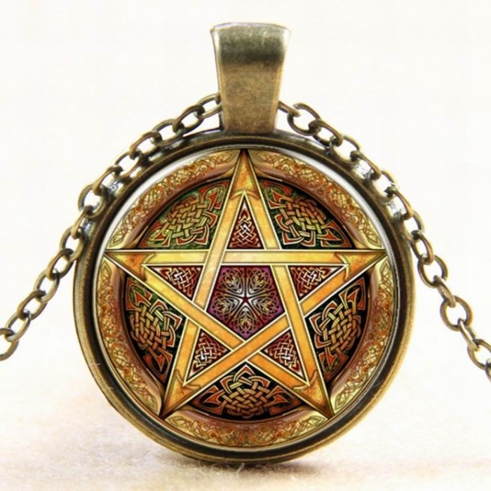 Винтажный Кулон Звезда круглый на цепочке, Металл и Стекло, Цвет: Бронза, Размер Цепочки: Длина 45-50см, Кулон: внешний диаметр 27мм, внутренний диаметр 25мм