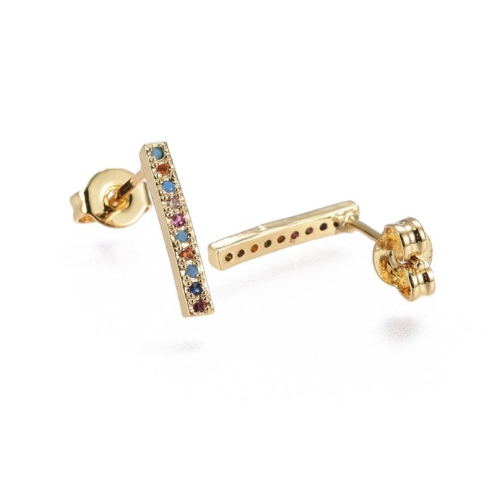 Серьги-Пусеты выполнены из Латуни и Разноцветных Фианитов, Прямоугольные, Цвет: Золото, Размер: Длина 13мм, Ширина 1.8мм, Толщина 1.8мм, Штифт 0.7мм.