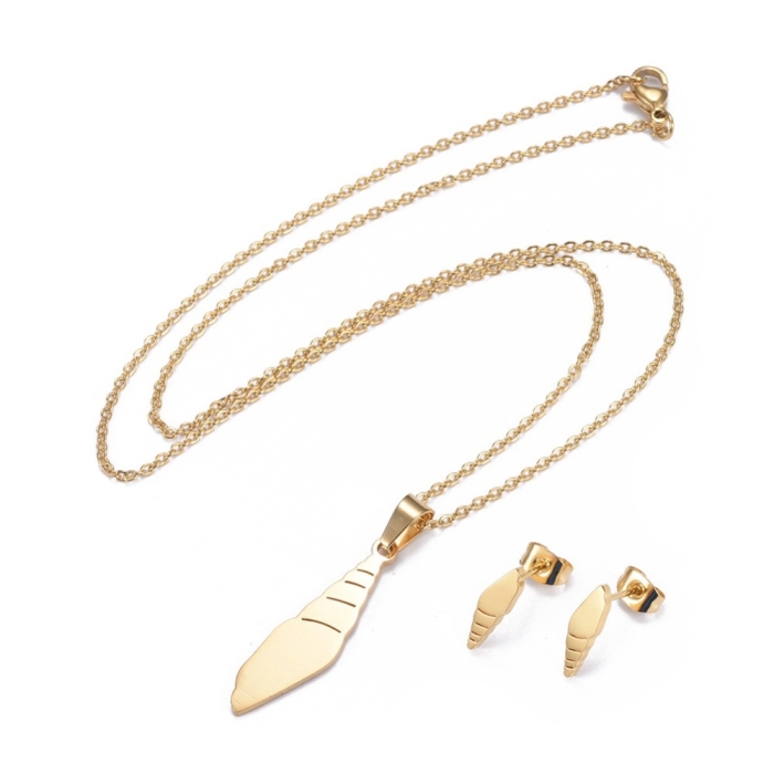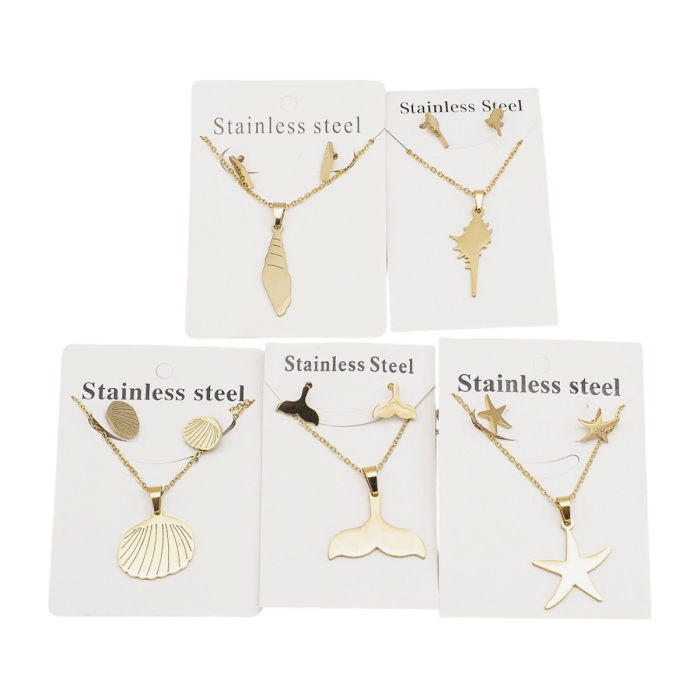 Набор Океан Цепочка с Кулоном и Серьги-Гвоздики, Нержавеющая Сталь, Золото, 45см, 5 комплектов/набор, (УТ100022581)