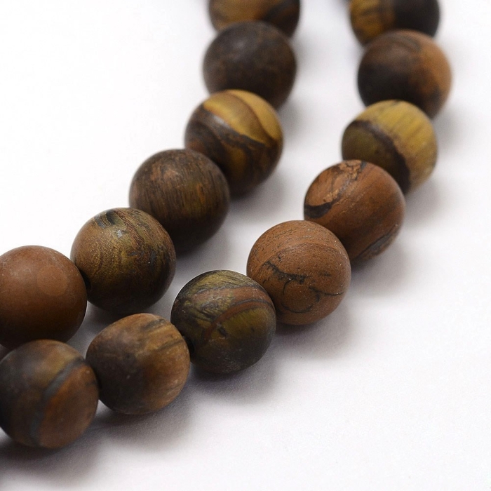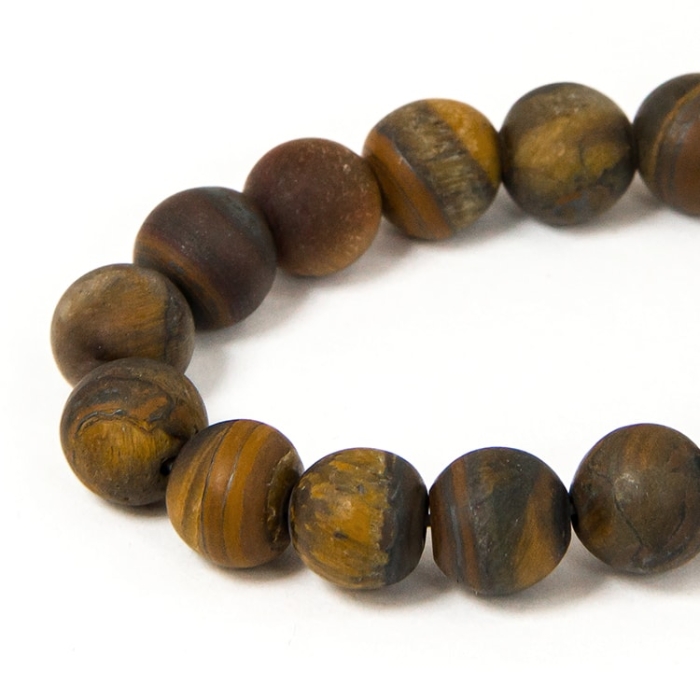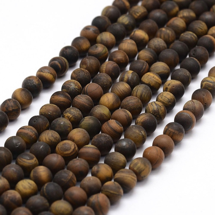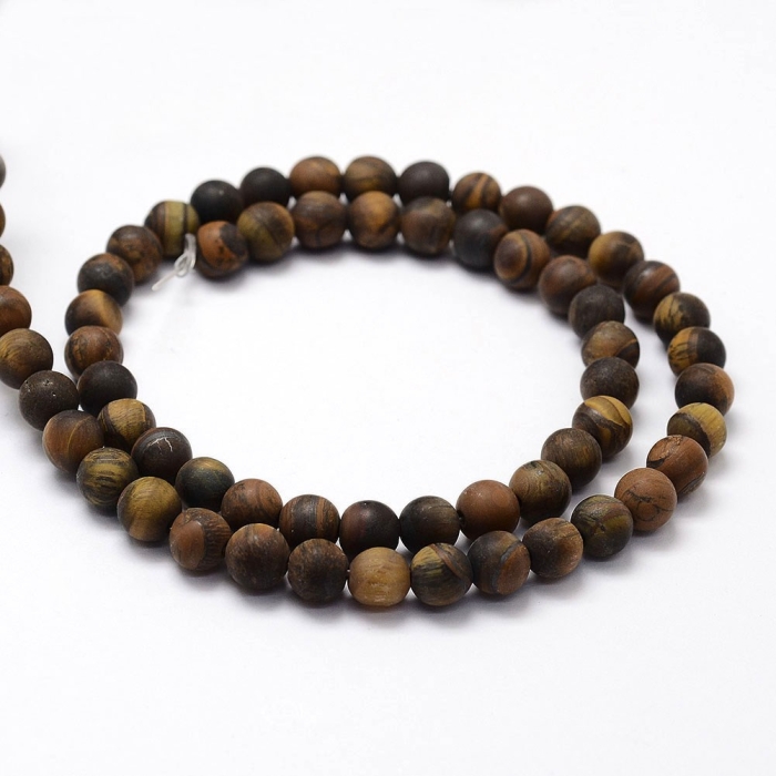 Бусины из натурального тигрового глаза с матовой поверхностью — это стильный выбор для украшений с приглушённой, благородной эстетикой. Камень сохраняет характерный рисунок и тёплый золотисто-коричневый оттенок, но без глянцевого блеска, создавая более спокойный и естественный образ. Тигровый глаз традиционно ассоциируется с силой, уверенностью и внутренней стойкостью. Он помогает преодолевать страхи, раскрывать личный потенциал и привлекать изобилие. Также считается, что он способствует гармонизации чакры солнечного сплетения. Матовые бусины идеально подходят для создания браслетов, серёг, колье, талисманов и украшений с характером.