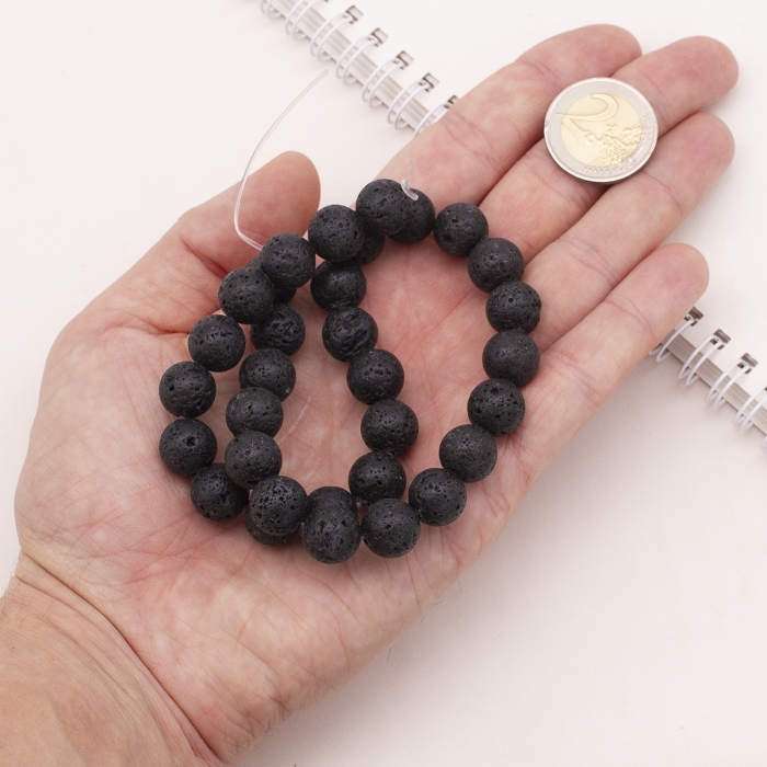 Бусины Натуральная Лава, На нитях, Круглые, Цвет: Черный, Размер: 12мм, Отверстие 1мм, около 32шт/37см/нить, (УТ100023328) - ᐈ заказывайте в Москве оптом и в розницу ✅Скидки ✅Акции ✅Распродажи ᐈ доставка по всей России ᐈ Интернет-магазин Мир Бусин
