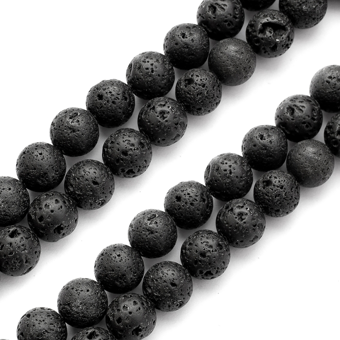 Бусины Натуральная Лава, На нитях, Неокрашенные, Круглые.