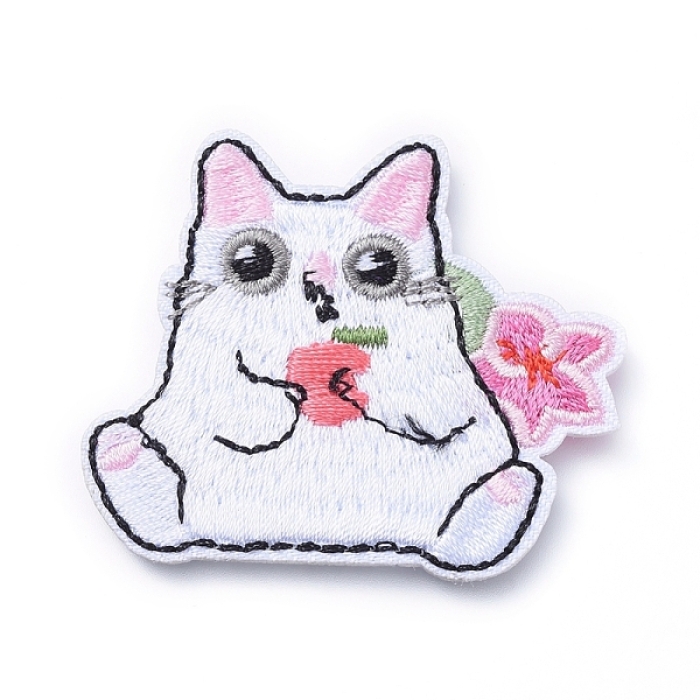 Нашивка на Одежду, Вышитая нашивка, Термонаклейка, Аппликация, Кот с Яблоком, Размер: 43x50x2мм, (УТ100023482) - ᐈ заказывайте в Москве оптом и в розницу ✅Скидки ✅Акции ✅Распродажи ᐈ доставка по всей России ᐈ Интернет-магазин Мир Бусин
