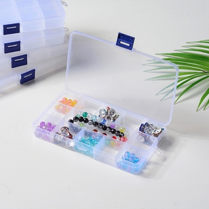 Контейнер для Бусин, Стаз, Фурнитуры Пластиковый на 15 Съемных Отсеков Прямоугольный, Бесцветный, 17.5x10.2x2.2см, (УТ100023494)