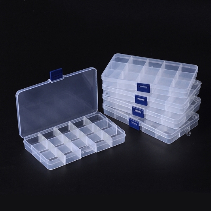 hot Контейнер для Бусин, Стаз, Фурнитуры Пластиковый на 15 Съемных Отсеков Прямоугольный, Бесцветный, 17.5x10.2x2.2см, (УТ100023494)