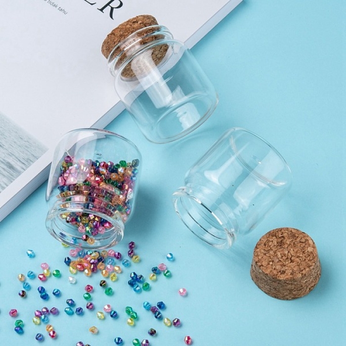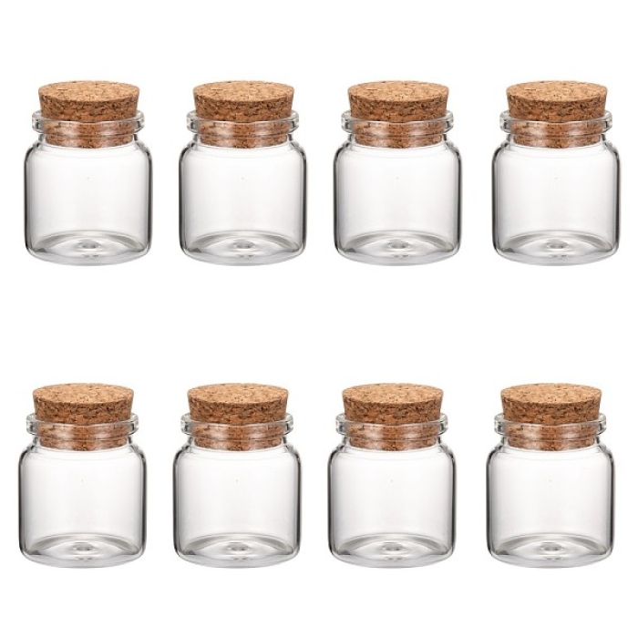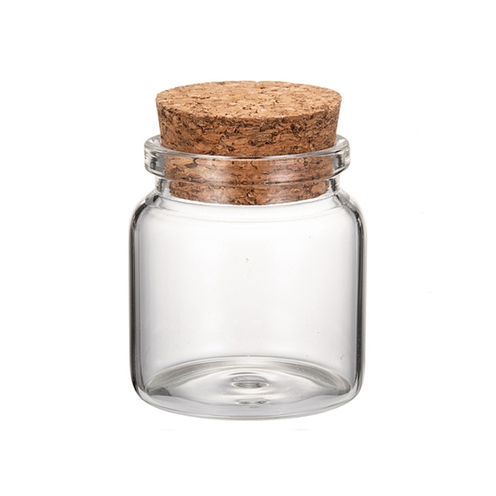 Стеклянная бутылочка для Бисера и Бусин, с Пробкой, Размер: 50x47мм, Отверстие 33мм, Обьем 87мл, (УТ100023534)