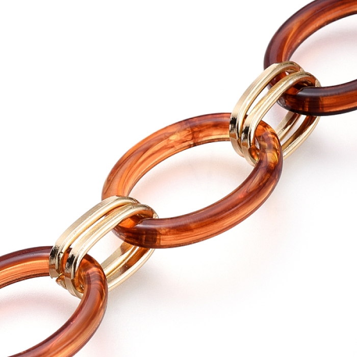 Цепь Акриловая Ручной Работы, Прозрачная, Овальная, Двойные звенья из Алюминия, Коричневый, Звено: 25.5x19x3.5мм и 15х8х1.5мм, 1м/нить (УТ100023730)