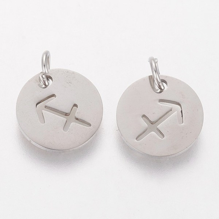 Подвеска 304 Нержавеющая Сталь, Круглая Плоская, Знак Созвездия/Зодиака Стрелец, Нержавеющая Сталь, 12х1мм, Отверстие 3мм, (УТ100023778)